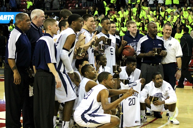 Scott Bolen’s 3-pointer capped a 17-8 run in the last 1:50 of the 4th quarter for Sherwood High School and forced overtime against Magruder in the semifinals of the MPSSAA State Championship Tournament at the Comcast Center in College Park, Md., on March 8, 2012. Magruder dominated the extra period and came away with a 75-68 victory.